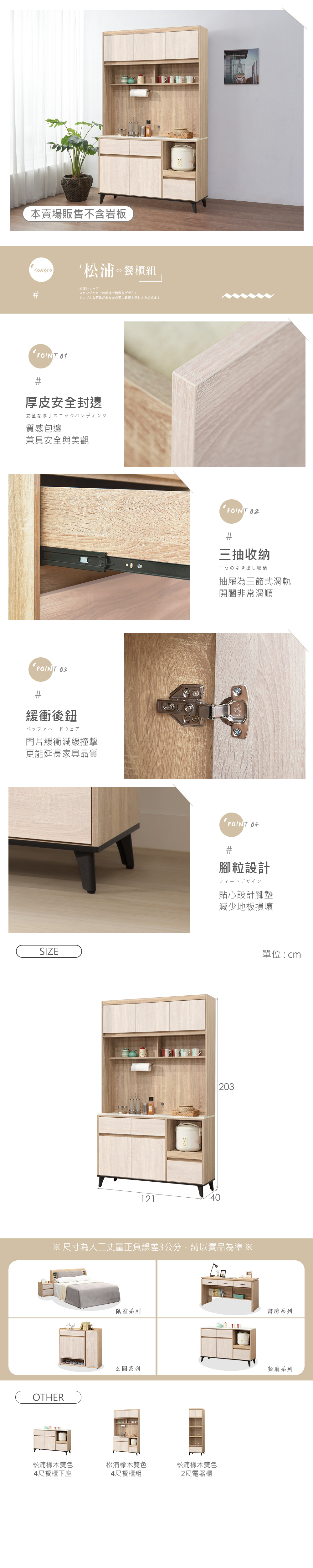 名稱:松浦橡木雙色4尺餐櫃組
