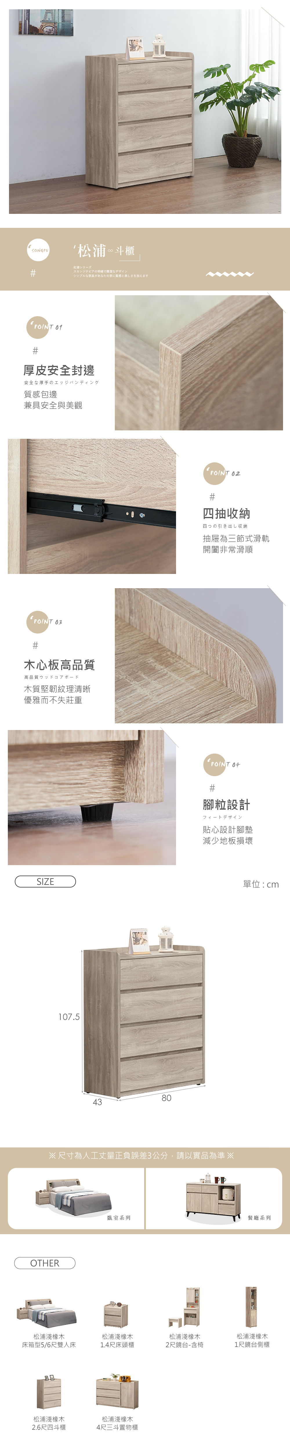 【時尚屋】[XV11]松浦淺橡木2.6尺四斗櫃,色系淺橡木色為主,點綴臥室視覺空間美感,材質上採用木心板、三節式滑軌等,均高於市場之產品規格,品質絕對有保證!此斗櫃在收納空間上採四抽,絕對可滿足您對收納的需求,相當於收納櫃之功能!有了他絕對可以讓您煥然一新!時尚屋帶給您對家具時尚新品味。