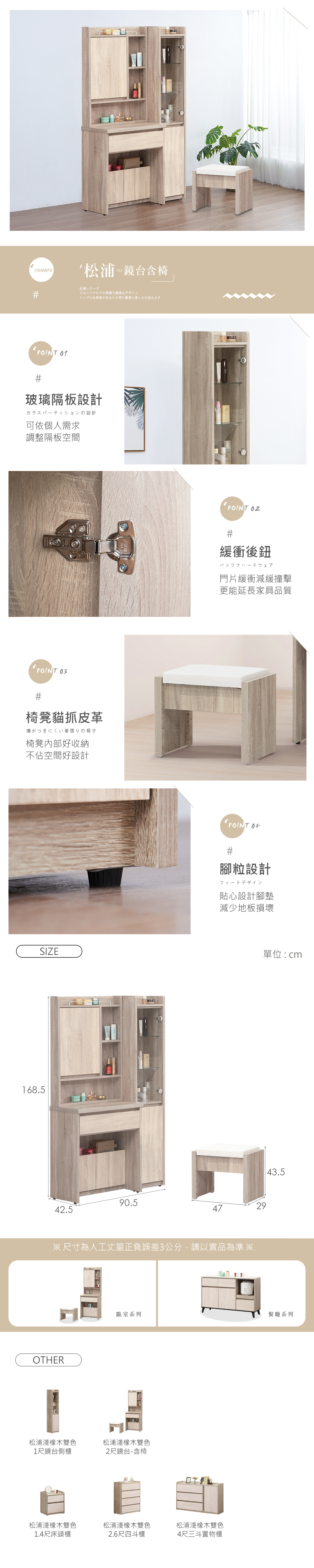 名稱:松浦淺白3尺鏡台側櫃組含椅