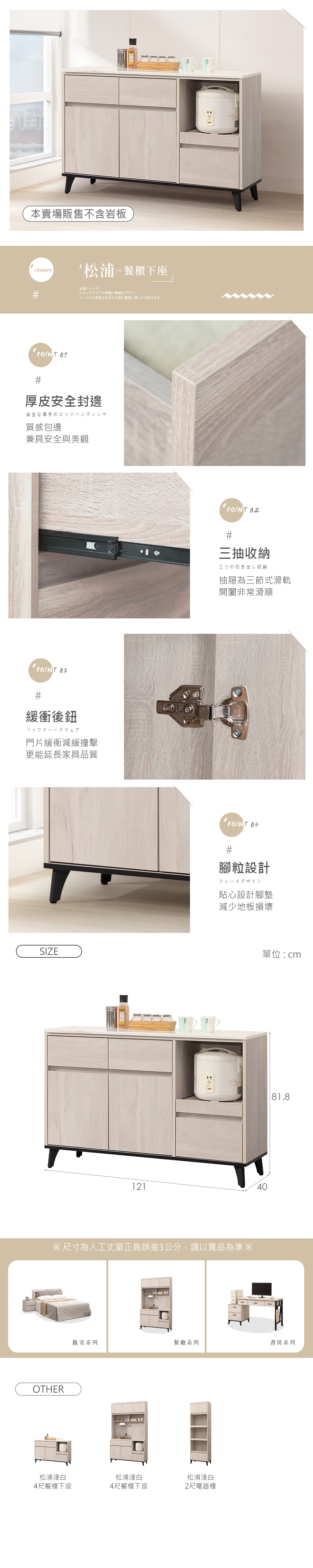 名稱:松浦淺白4尺餐櫃下座