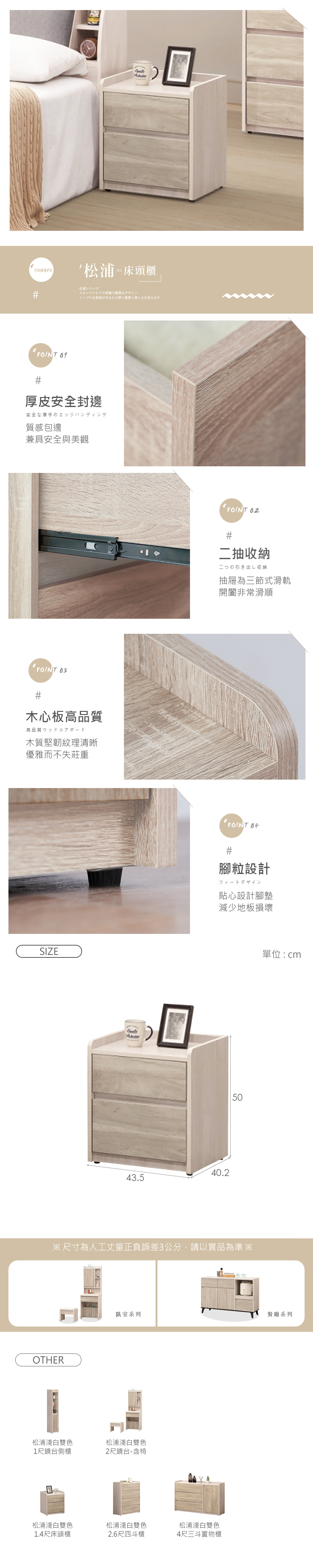 名稱:松浦淺白雙色1.4尺床頭櫃