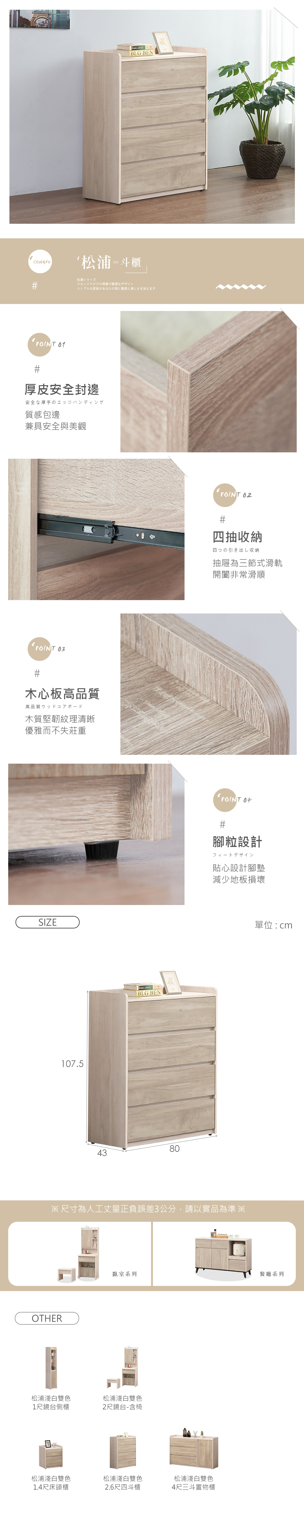 名稱:松浦淺白雙色2.6尺四斗櫃