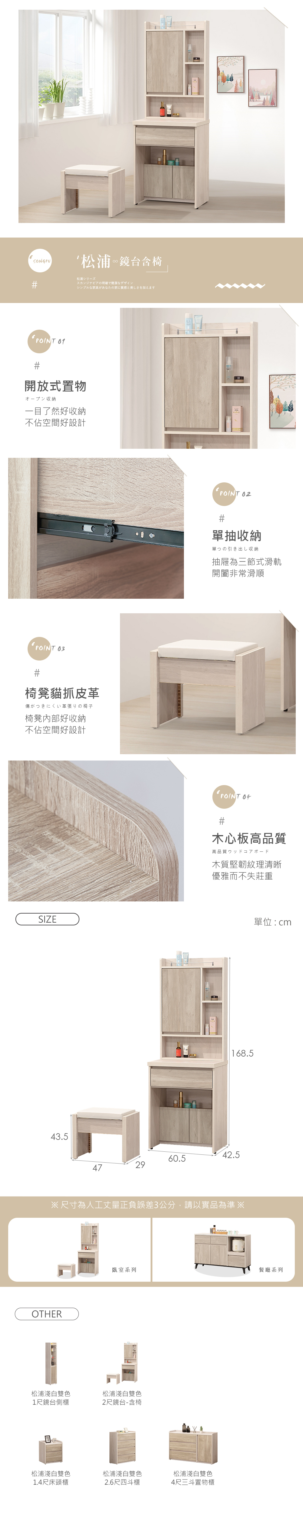 名稱:松浦淺白雙色2尺鏡台-含椅