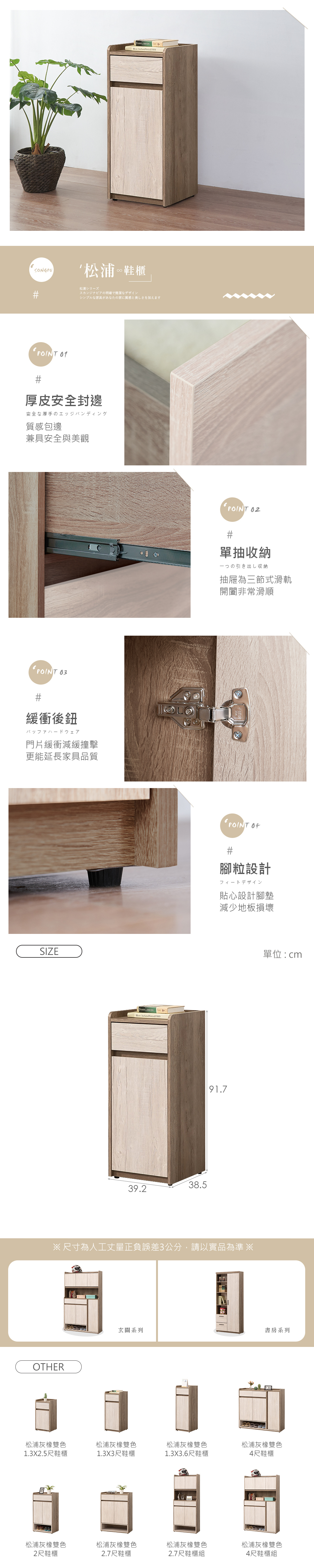 名稱:松浦灰橡雙色1.3x3尺鞋櫃