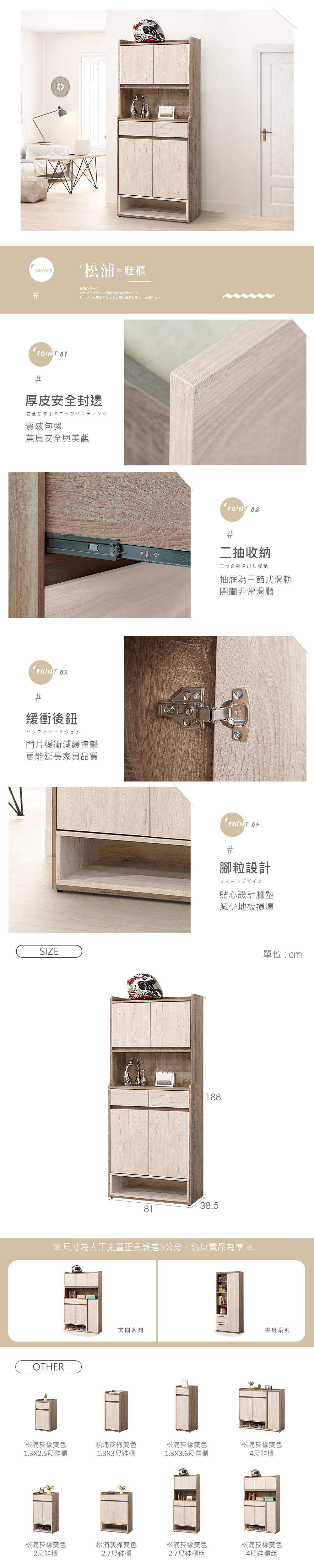 名稱:松浦灰橡雙色2.7尺鞋櫃組