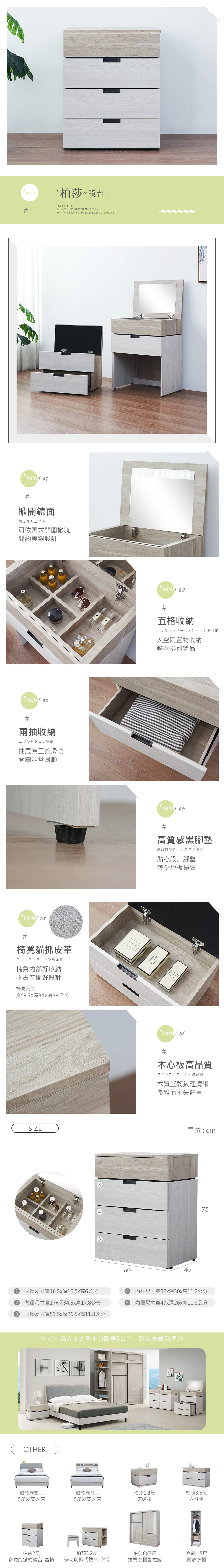 名稱:柏莎2尺多功能掀式鏡台-含椅