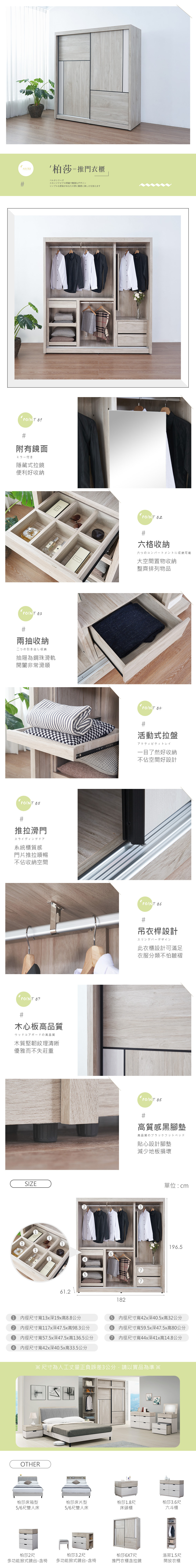 名稱:柏莎6x7尺推門衣櫃含拉鏡