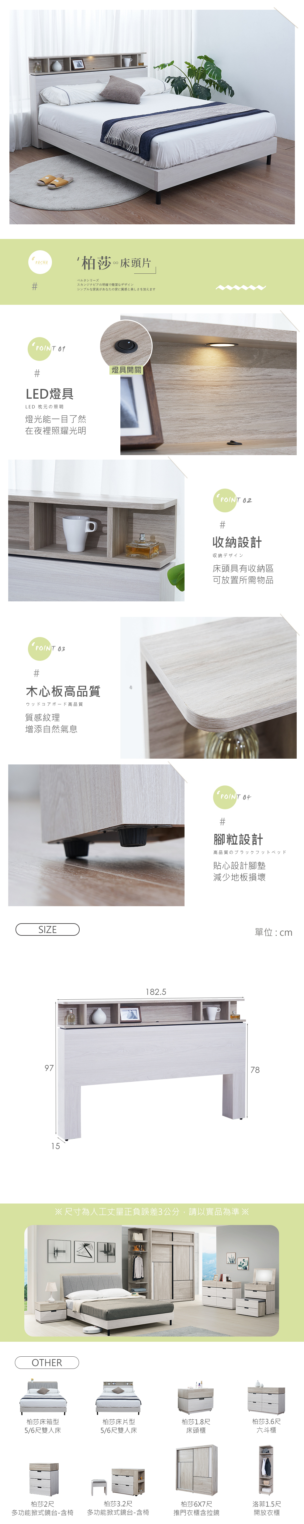 名稱:柏莎6尺LED燈床頭片