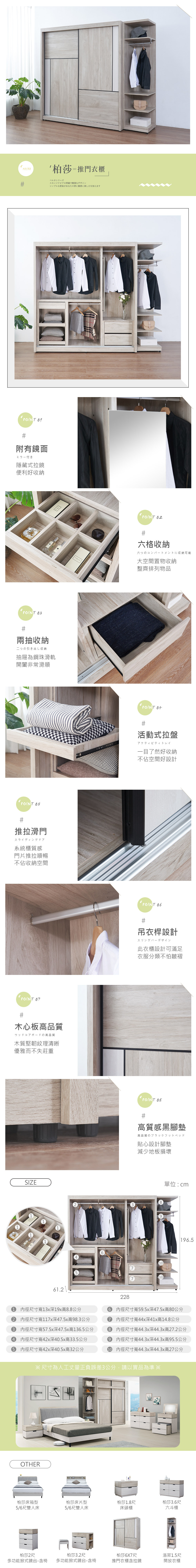 柏莎7.6尺推門衣櫃