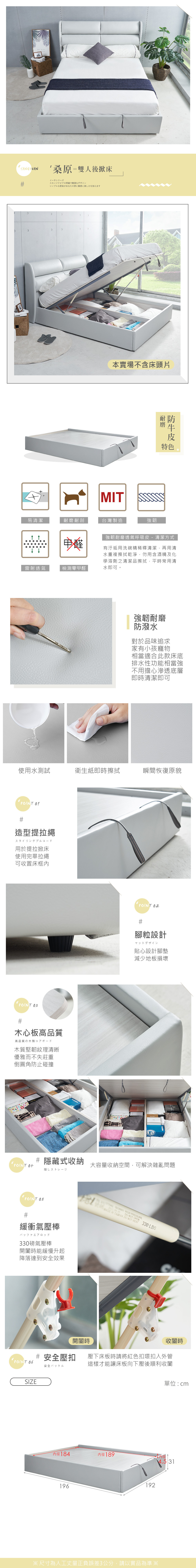 名稱:桑原6尺仿牛皮加大雙人後掀床