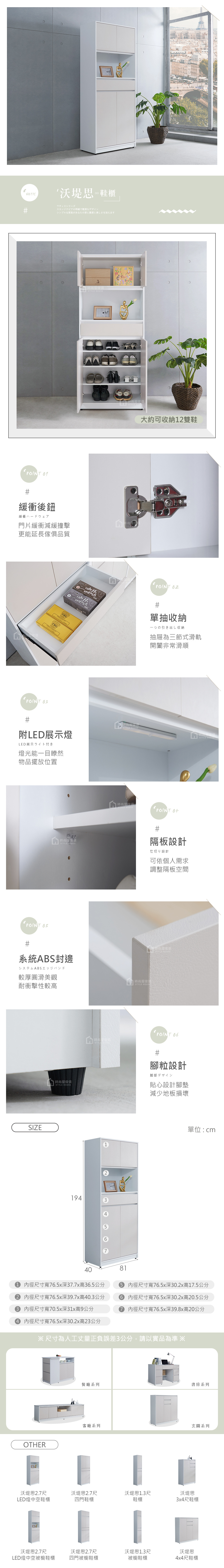 名稱:沃堤思2.7尺LED燈中空鞋櫃