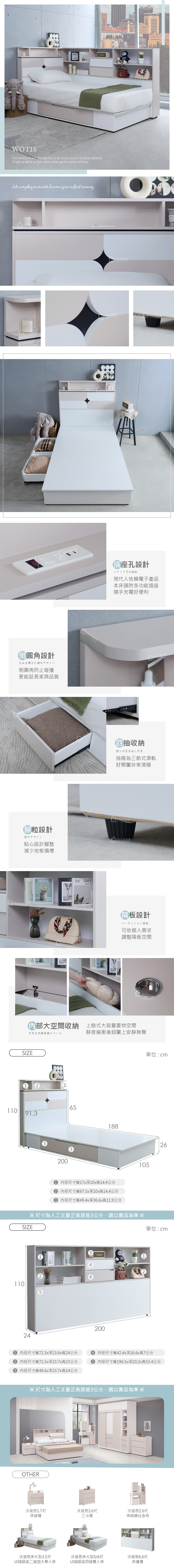 名稱:沃堤思3.5尺床片型3件組-床片+床底+床邊櫃