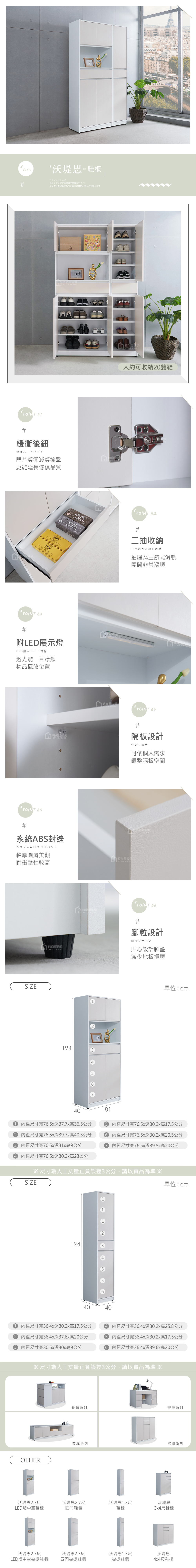 名稱:沃堤思4尺LED燈鞋櫃