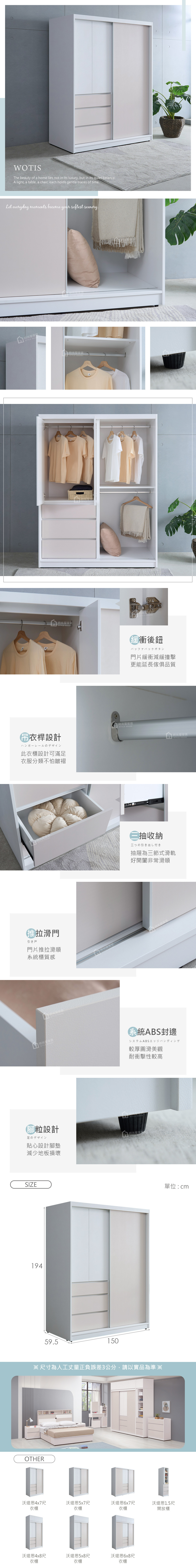 【時尚屋】[GZ14]沃堤思5x7尺衣櫃,色系馥列白奶茶色為主,點綴臥室視覺空間美感,材質上採用木心板、三節式滑軌、緩衝後鈕等,均高於市場之產品規格,品質絕對有保證!此衣櫃在收納空間上採三抽,絕對可滿足您對收納的需求,相當於收納櫃之功能!有了他絕對可以讓您煥然一新!時尚屋帶給您對家具時尚新品味。