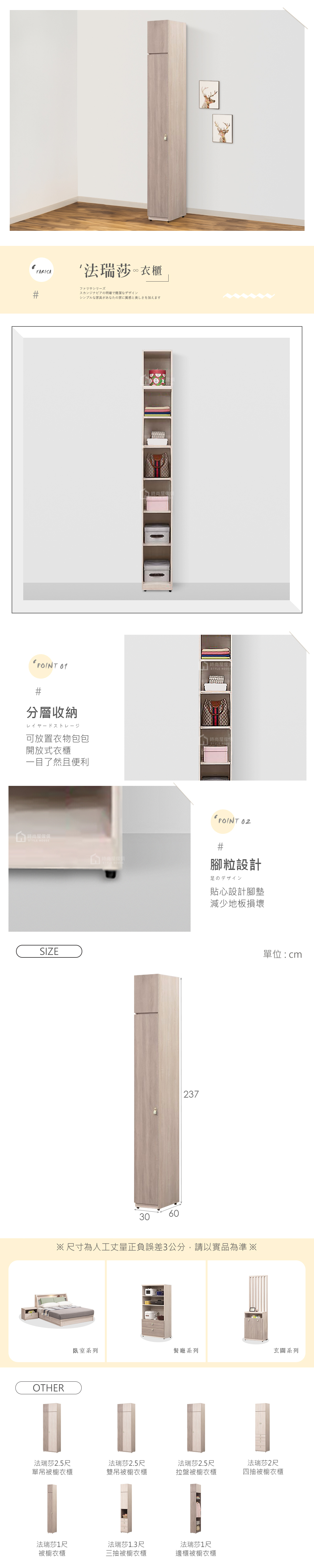 名稱:法瑞莎1尺被櫥衣櫃