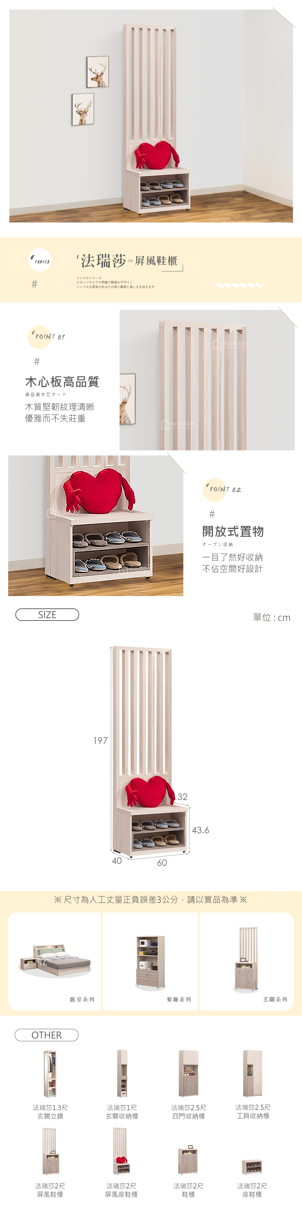 名稱:法瑞莎2尺屏風座鞋櫃