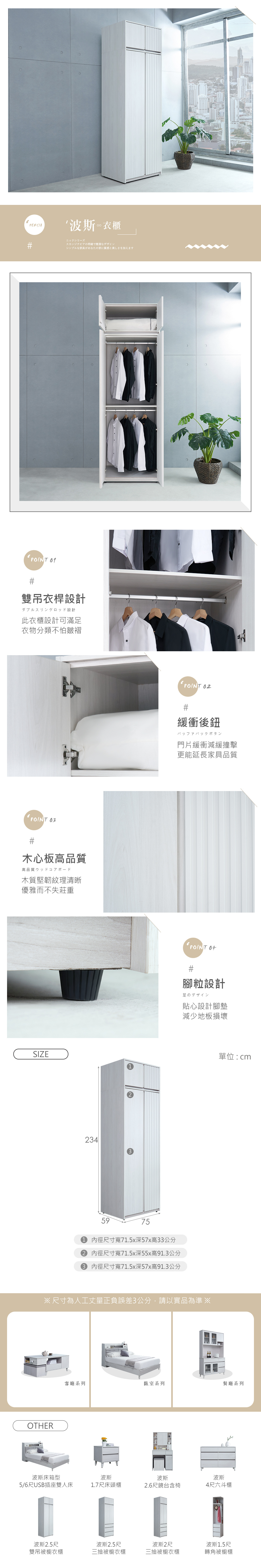 名稱:波斯2.5尺雙吊被櫥衣櫃