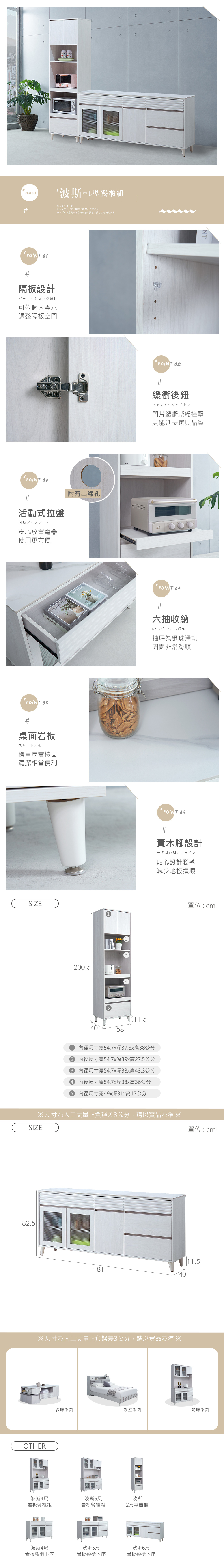 【時尚屋】[GZ13]波斯7.9尺L型岩板餐櫃組,色系橡木白色為主,點綴廚房視覺空間美感,材質上採用木心板、緩衝後鈕、鋼珠滑軌、ABS封邊、桌面岩板、實木腳等,均高於市場之產品規格,品質絕對有保證!此餐櫃在收納空間上採六抽+單雙開門,絕對可滿足您對收納的需求,相當於收納櫃之功能!有了他絕對可以讓您煥然一新!時尚屋帶給您對家具時尚新品味。