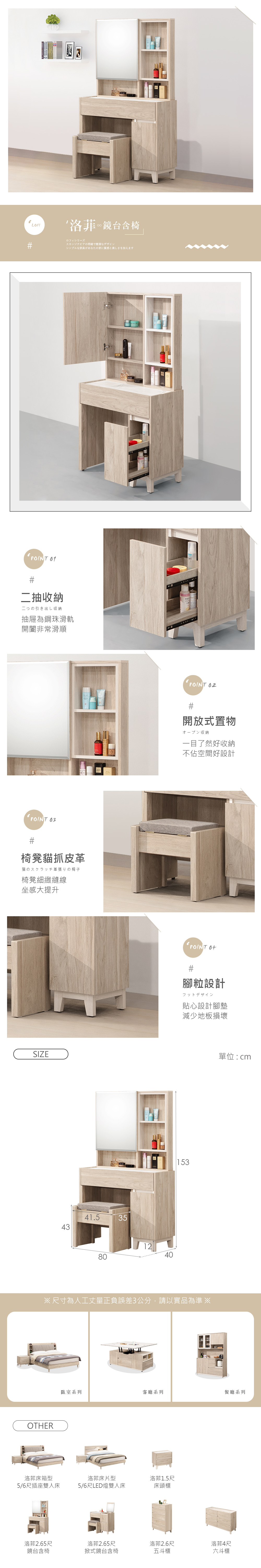名稱:洛菲2.65尺鏡台含椅