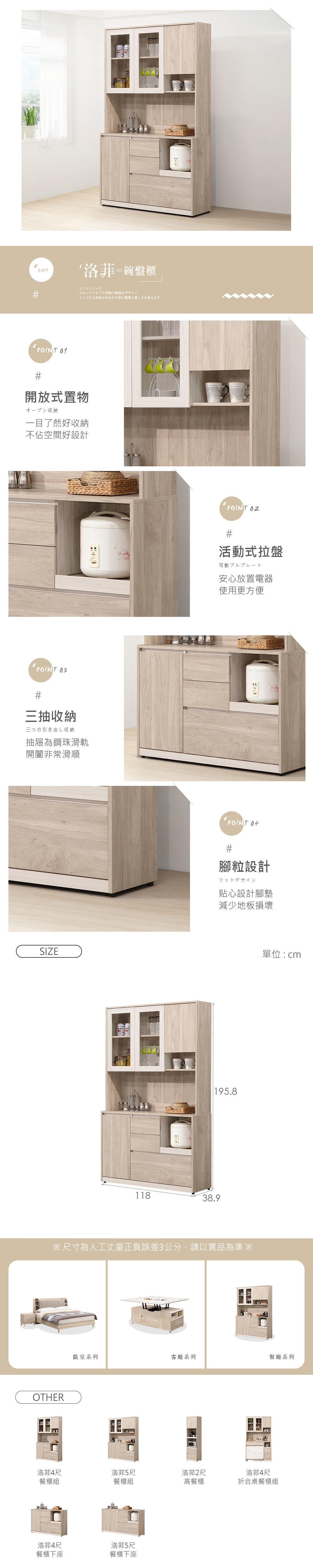 【時尚屋】[5U11]洛菲4尺餐櫃組,色系橡木色為主,點綴廚房視覺空間美感,材質上採用木心板、緩衝後鈕、鋼珠滑軌等,均高於市場之產品規格,品質絕對有保證!此餐櫃在收納空間上採三抽+單雙開門,絕對可滿足您對收納的需求,相當於收納櫃之功能!有了他絕對可以讓您煥然一新!時尚屋帶給您對家具時尚新品味。