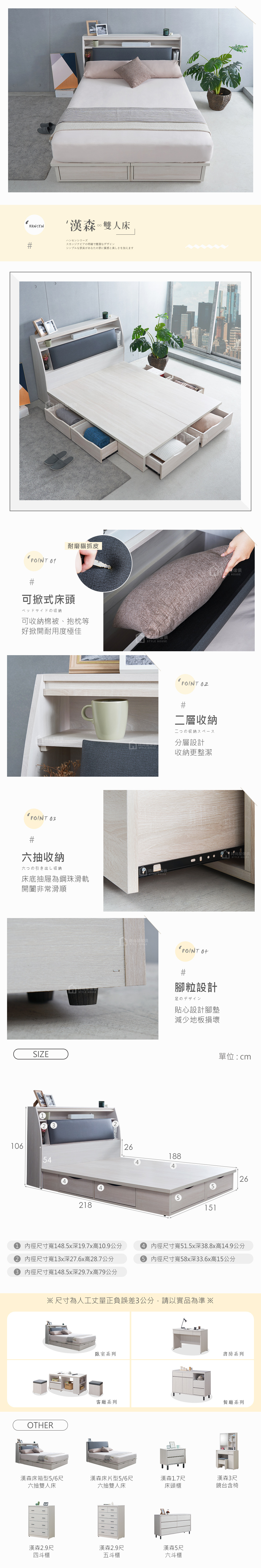 【時尚屋】[ZZ24]漢森床箱型5尺六抽雙人床,色系橡木白色為主,點綴臥室視覺空間美感,材質上採用木心板、貓抓皮革、鋼珠滑軌等,均高於市場之產品規格,品質絕對有保證!此雙人床舒適程度絕對可滿足您的需求!設計質感及耐用性絕對是首選。有了他絕對可以讓您煥然一新!時尚屋帶給您對家具時尚新品味。