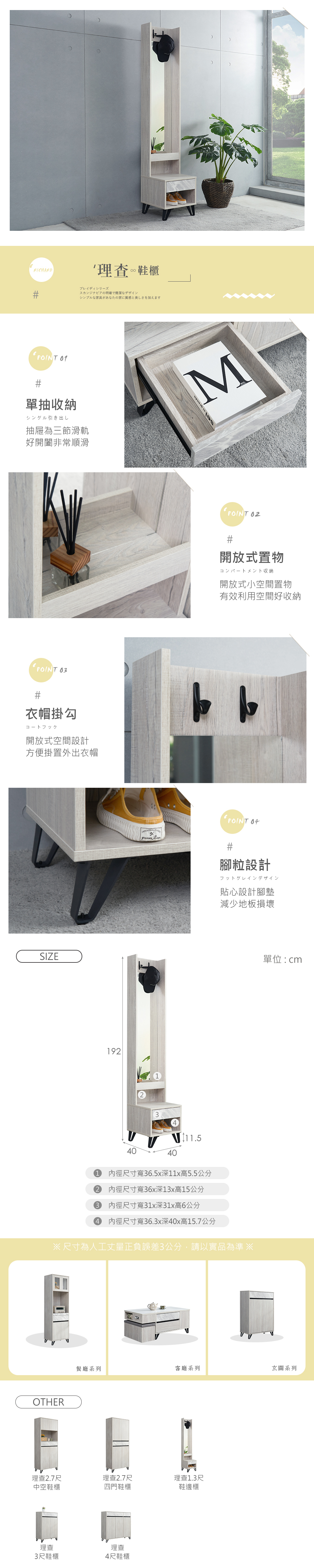 名稱:理查1.3尺鞋邊櫃