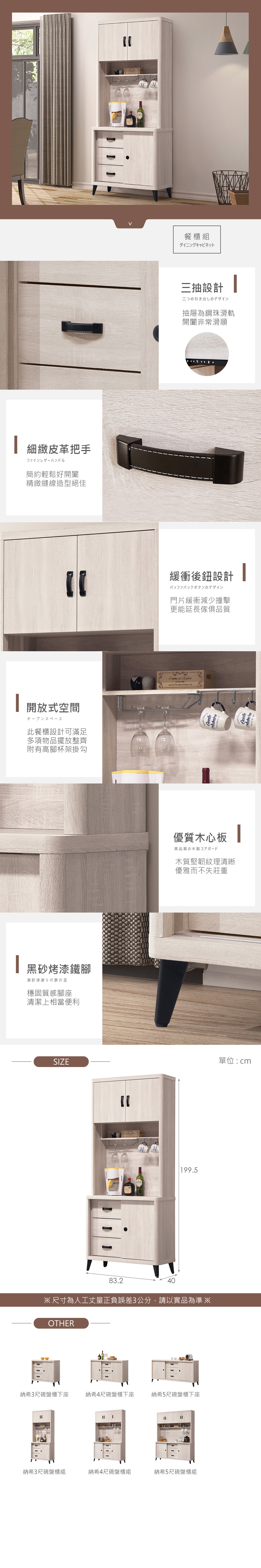 【時尚屋】[RV8]納希3尺碗盤櫃組,色系白梣木色為主,點綴餐廳視覺空間美感,材質上採用木心板、鋼珠滑軌、緩衝後鈕、黑砂烤漆鐵腳等,均高於市場之產品規格,品質絕對有保證!此餐櫃在收納空間上採三抽+雙開門,絕對可滿足您對收納的需求,相當於收納櫃之功能!有了他絕對可以讓您煥然一新!時尚屋帶給您對家具時尚新品味。