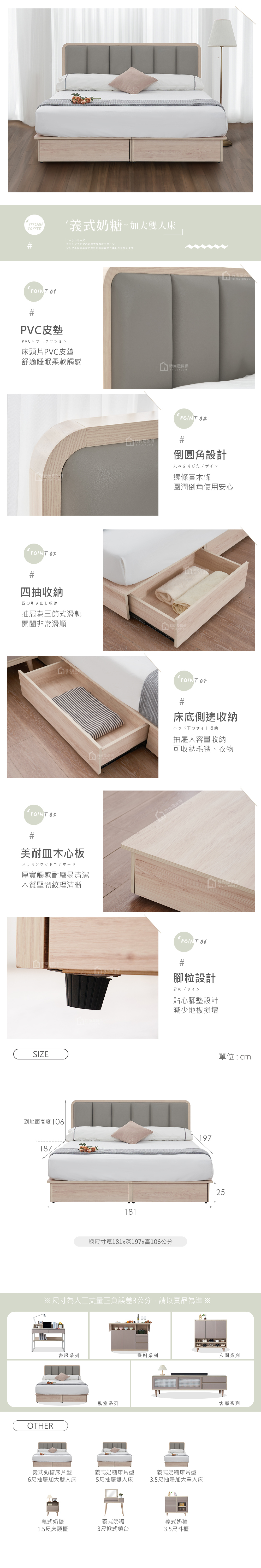 名稱:義式奶糖四抽床片型6尺加大雙人床