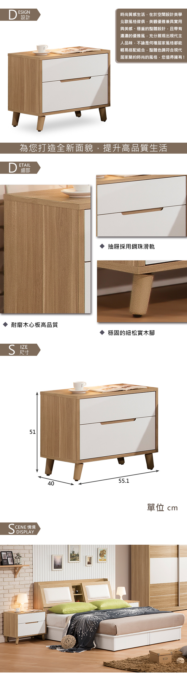 【時尚屋】[NM29]肯詩特烤白雙色1.8尺床頭櫃,色系白色為主,點綴臥室視覺空間美感,材質上採用木心板、鋼珠滑軌、紐松實木腳等,均高於市場之產品規格,品質絕對有保證!此床頭櫃在收納空間上採二抽,絕對可滿足您對收納的需求,設計質感及耐用性絕對是首選。有了他絕對可以讓您煥然一新!時尚屋帶給您對家具時尚新品味。