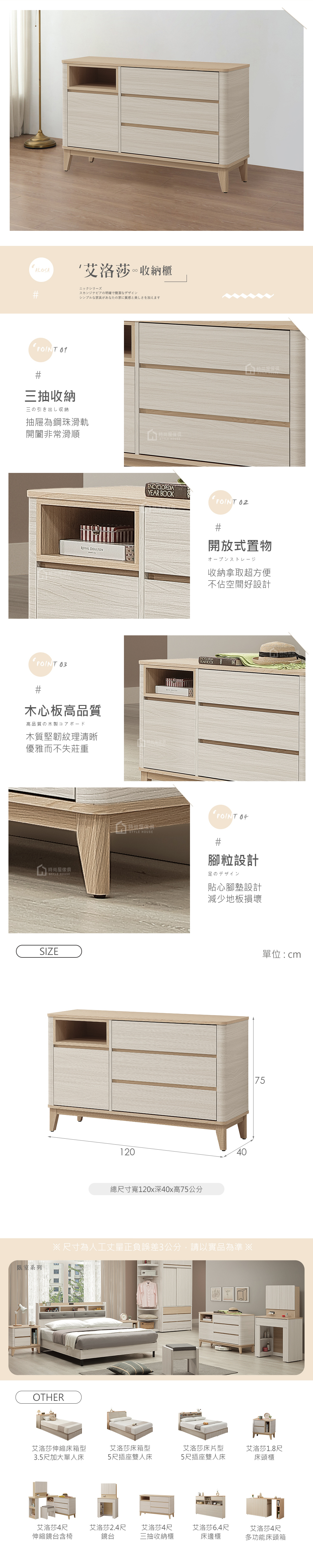 名稱:艾洛莎4尺三抽收納櫃
