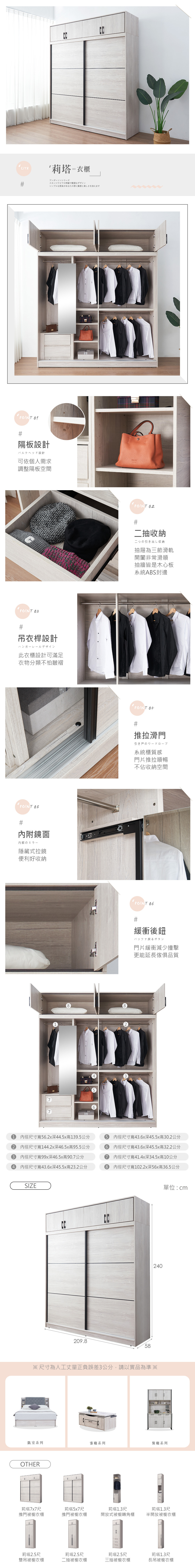 尺寸:寬209.8x深58x高240公分
