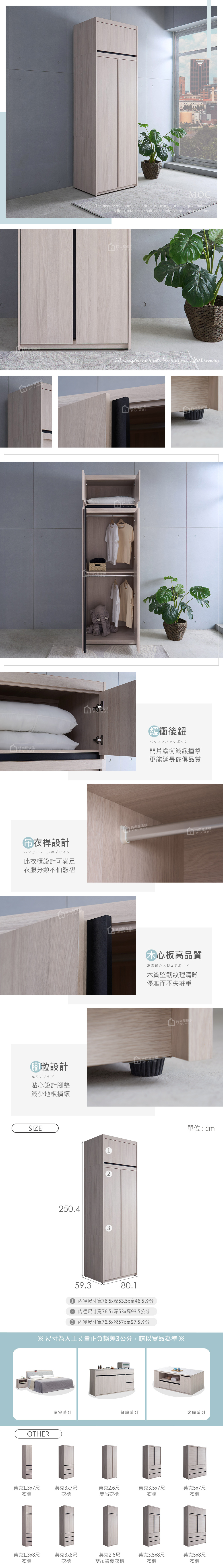 名稱:莫克2.6尺雙吊被櫥衣櫃