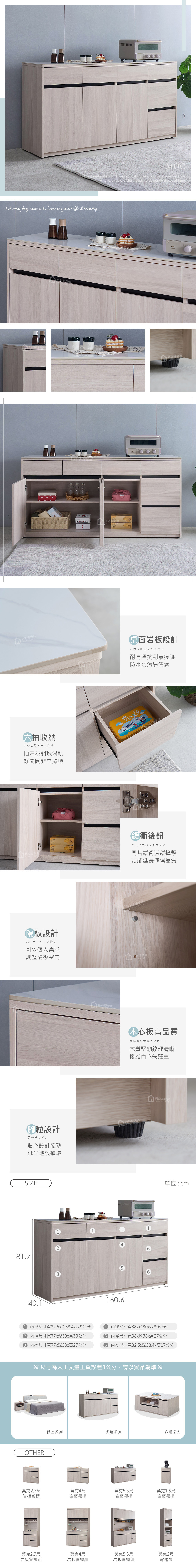 【時尚屋】[DV11]莫克5.3尺岩板餐櫃,色系奶茶色為主,點綴廚房視覺空間美感,材質上採用木心板、鋼珠滑軌、緩衝後鈕、岩板等,均高於市場之產品規格,品質絕對有保證!此餐櫃在收納空間上採六抽,絕對可滿足您對收納的需求,相當於收納櫃之功能!有了他絕對可以讓您煥然一新!時尚屋帶給您對家具時尚新品味。