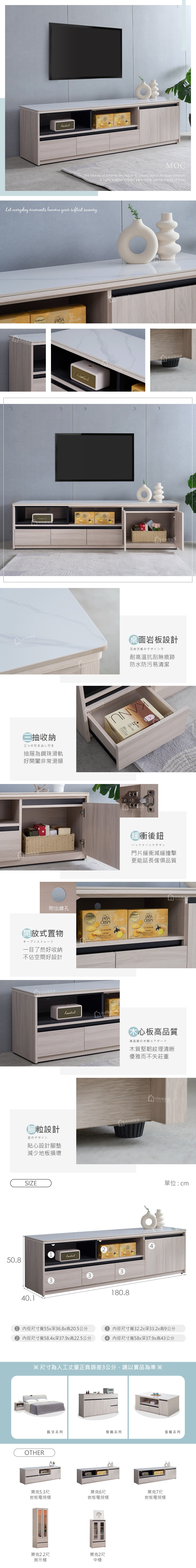 尺寸:寬180.8x深40.1x高50.8公分