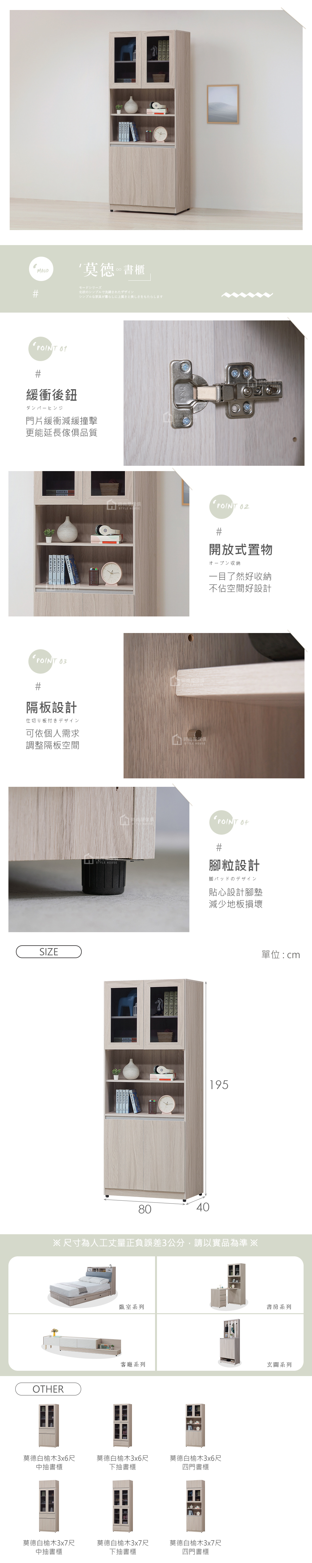 【時尚屋】[CW24]莫德白榆木3x6尺四門書櫃,色系白榆木色為主,點綴書房視覺空間美感,材質上採用木心板、緩衝後鈕等,均高於市場之產品規格,品質絕對有保證!此書櫃在收納空間上採雙開門,絕對可滿足您對收納的需求,相當於收納櫃之功能!有了他絕對可以讓您煥然一新!時尚屋帶給您對家具時尚新品味。