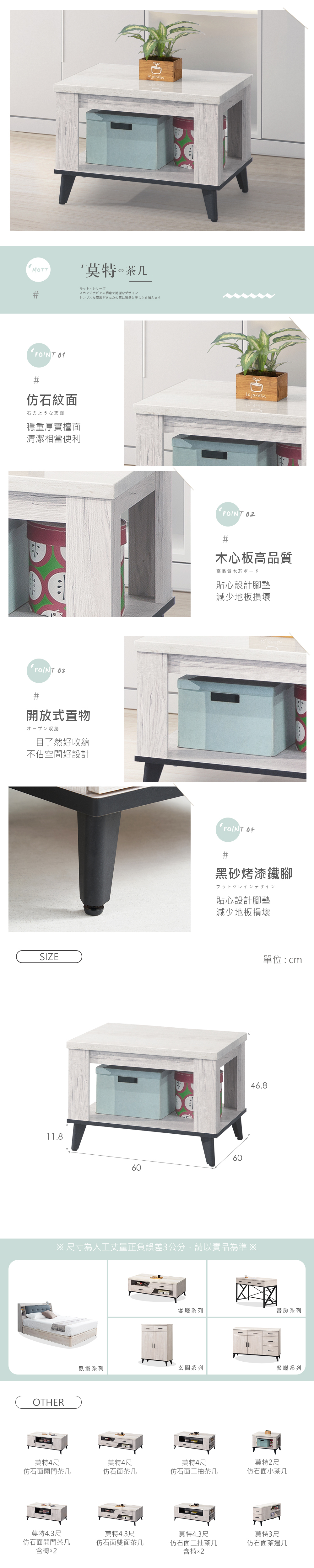 【時尚屋】[DV10]莫特2尺仿石面小茶几,色系白橡色為主,點綴客廳視覺空間美感,材質上採用木心板、仿石紋面、黑砂烤漆鐵腳等,均高於市場之產品規格,品質絕對有保證!此茶几在收納空間上採開放式,絕對可滿足您對收納的需求,相當於收納櫃之功能!有了他絕對可以讓您煥然一新!時尚屋帶給您對家具時尚新品味。