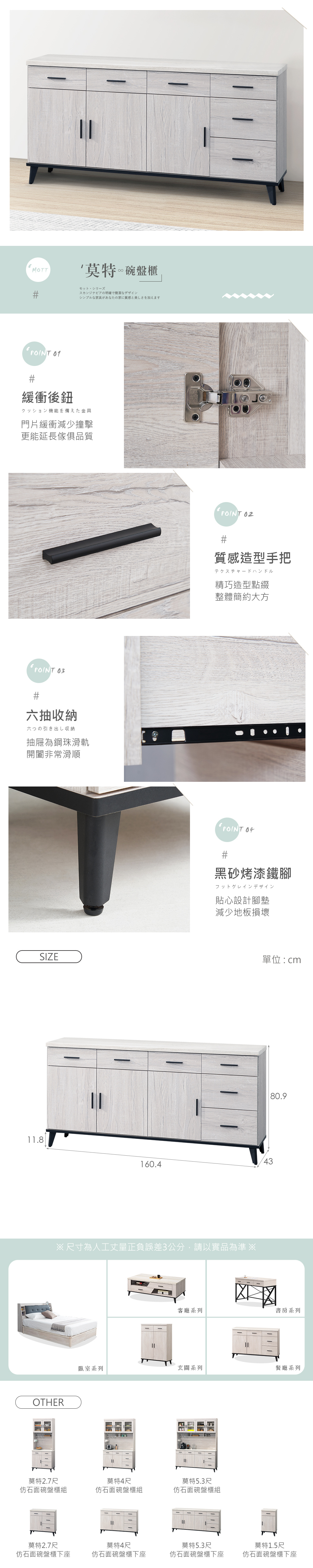 尺寸:寬160.4x深43x高80.9公分