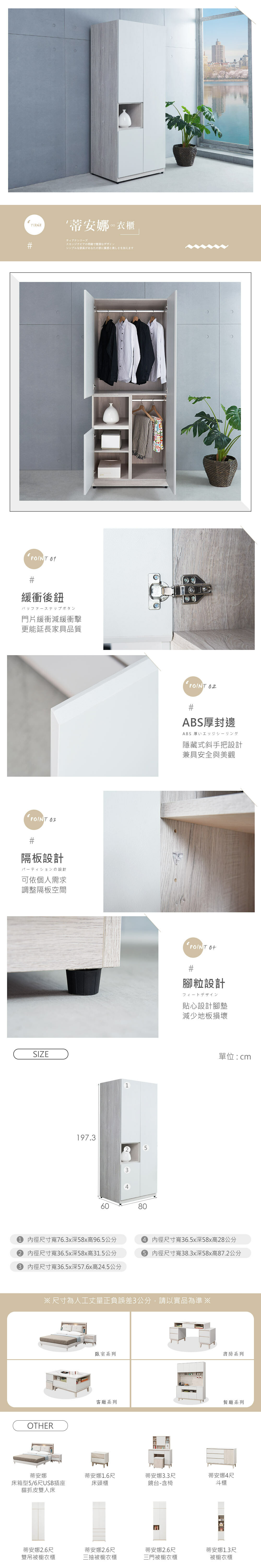 【時尚屋】[MX22]蒂安娜2.6尺三門衣櫃,色系奶灰色為主,點綴臥室視覺空間美感,材質上採用木心板、緩衝後鈕、ABS封邊等,均高於市場之產品規格,品質絕對有保證!此衣櫃在收納空間上採雙開門,絕對可滿足您對收納的需求,相當於收納櫃之功能!有了他絕對可以讓您煥然一新!時尚屋帶給您對家具時尚新品味。