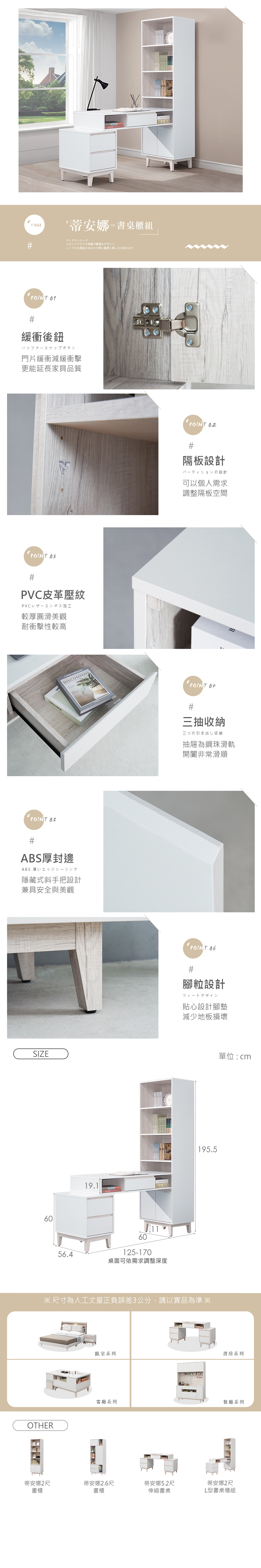 名稱:蒂安娜2尺L型書桌櫃組
