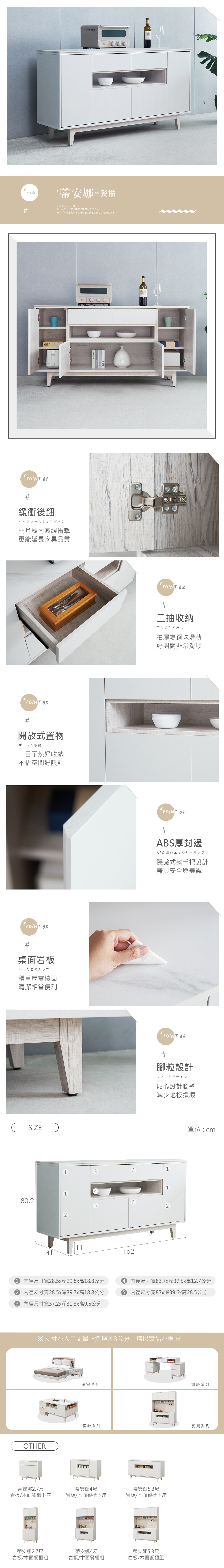 名稱:蒂安娜5.3尺岩板餐櫃下座