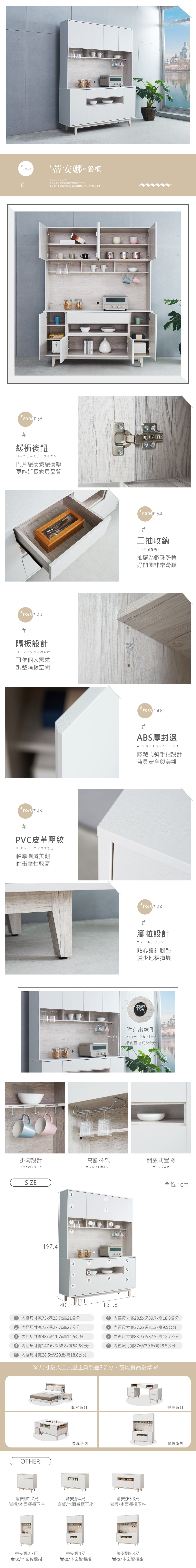 【時尚屋】[MX22]蒂安娜5.3尺餐櫃組,色系奶灰色為主,點綴廚房視覺空間美感,材質上採用木心板、緩衝後鈕、鋼珠滑軌、ABS封邊等,均高於市場之產品規格,品質絕對有保證!此餐櫃在收納空間上採二抽+單雙開門,絕對可滿足您對收納的需求,相當於收納櫃之功能!有了他絕對可以讓您煥然一新!時尚屋帶給您對家具時尚新品味。