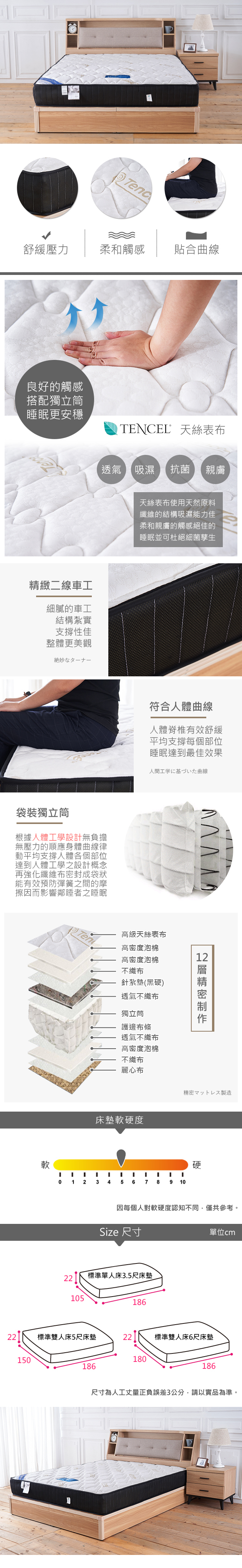 名稱:蒂芙妮天絲透氣5尺雙人獨立筒床墊