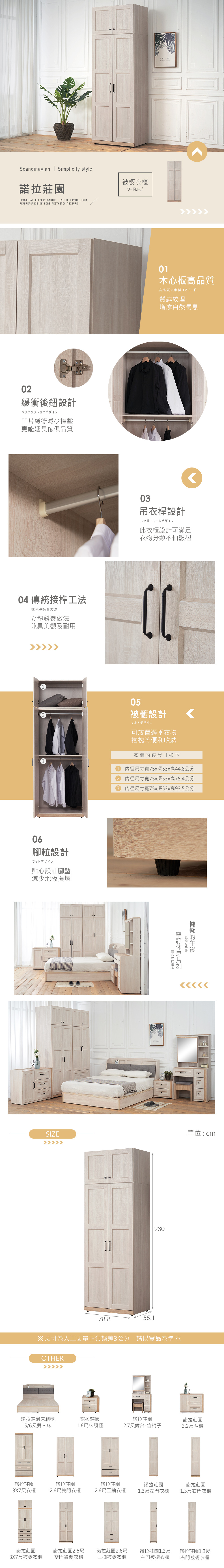 諾拉莊園2.6尺雙門被櫥衣櫃