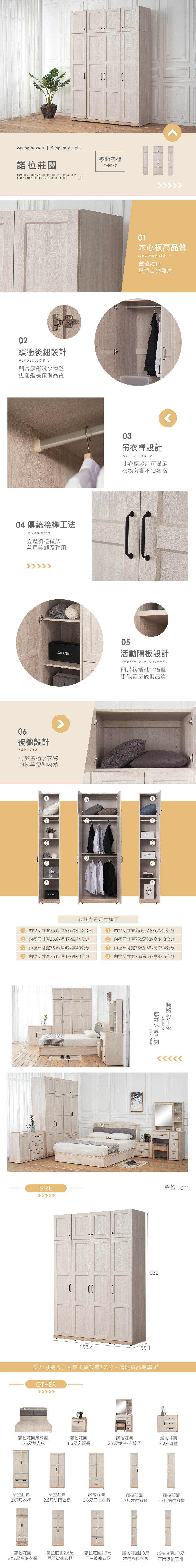 名稱:諾拉莊園5.2尺左右雙門被櫥衣櫃
