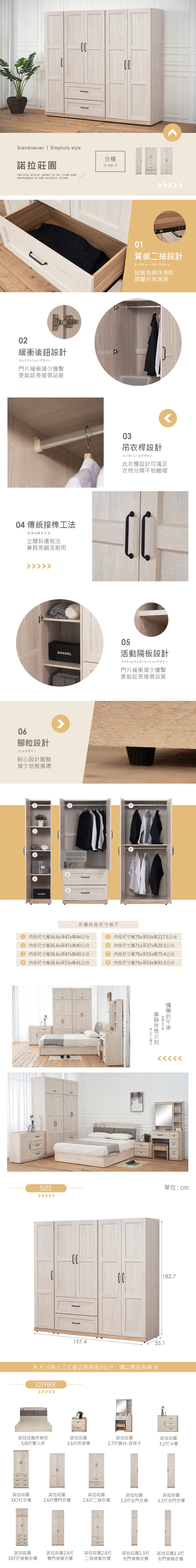 | 名稱:諾拉莊園6.5尺左門衣櫃 型號:RT9-A015+A016+A018 內容:木心板、緩衝後鈕、鋼珠滑軌 尺寸:寬197.4x深55.1x高182.7公分 【時尚屋】[RT9]諾拉莊園6.5尺左門衣櫃,色系以白原切色為主,點綴臥室視覺空間美感,材質上採用木心板、緩衝後鈕、鋼珠滑軌等,均高於市場之產品規格,品質絕對有保證!此衣櫃在收納空間上採四支吊衣桿+單開門+雙開門+二抽,此衣櫃絕對可滿足您對收納的需求,相當於收納櫃之功能!設計質感及耐用性絕對是首選。有了他絕對可以讓您煥然一新!時尚屋帶給您對家具時尚新品味。 ◆採用符合標準材質讓你用的安心。 ◆此商品不需要DIY組立,此商品為組立後之成品。 ◆品質保證、專業設計、貼心服務。 ◆全由專人配送到家,專業安心服務,替你省下更多時間。 |
