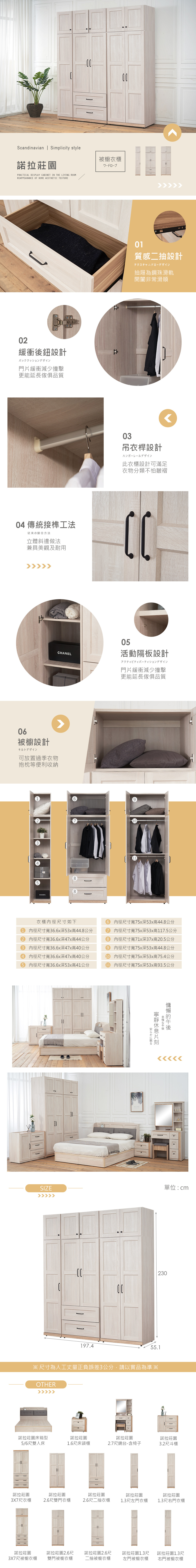 名稱:諾拉莊園6.5尺左門被櫥衣櫃