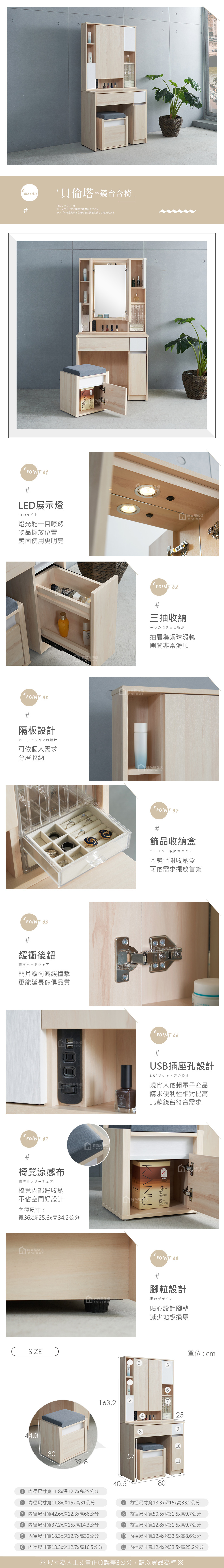 名稱:貝倫塔白楓木2.7尺鏡台含椅
