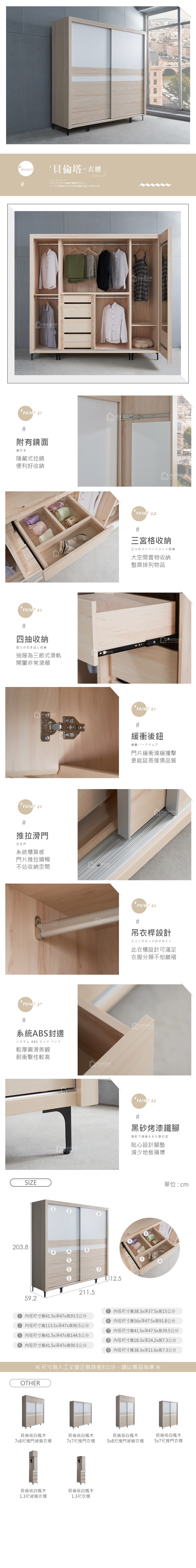 【時尚屋】[CT23]貝倫塔白楓木7x7尺推門衣櫃,色系白楓木色為主,點綴臥室視覺空間美感,材質上採用木心板、三節式滑軌、黑砂烤漆鐵腳等,均高於市場之產品規格,品質絕對有保證!此衣櫃在收納空間上採四抽+推門,絕對可滿足您對收納的需求,相當於收納櫃之功能!有了他絕對可以讓您煥然一新!時尚屋帶給您對家具時尚新品味。