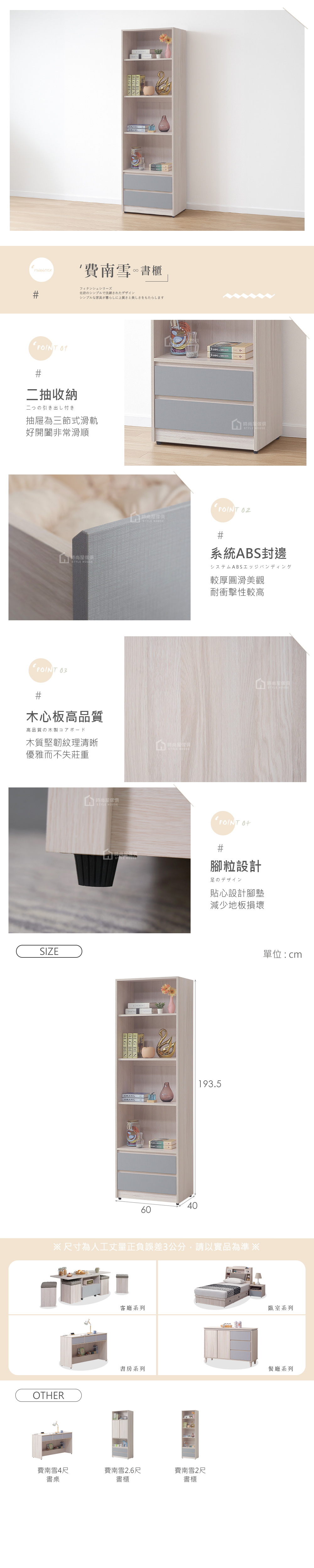 名稱:費南雪2尺書櫃