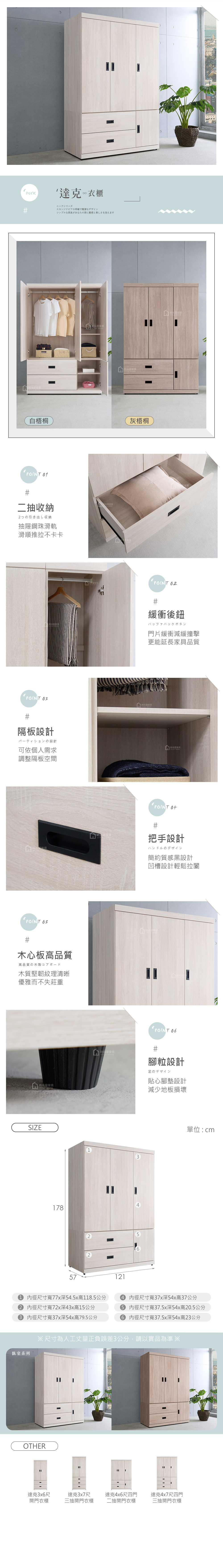 【時尚屋】[UF13]達克4x6尺四門二抽開門衣櫃,色系白梧桐、灰梧桐為主,點綴臥室視覺空間美感,材質上採用木心板、鋼珠滑軌、緩衝後鈕等,均高於市場之產品規格,品質絕對有保證!此衣櫃在收納空間上採二抽,絕對可滿足您對收納的需求,相當於收納櫃之功能!有了他絕對可以讓您煥然一新!時尚屋帶給您對家具時尚新品味。